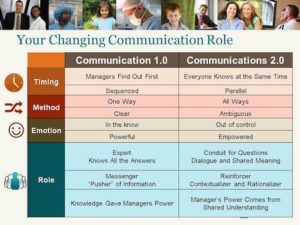 - Compare and contrast the Communication 1.0 vs Communication 2.0 models